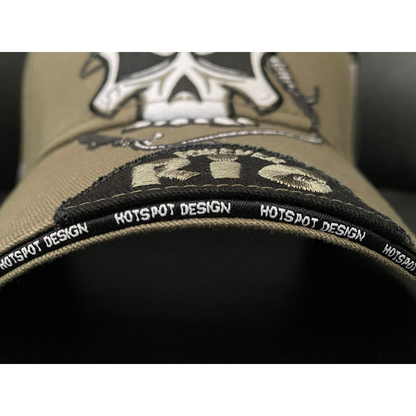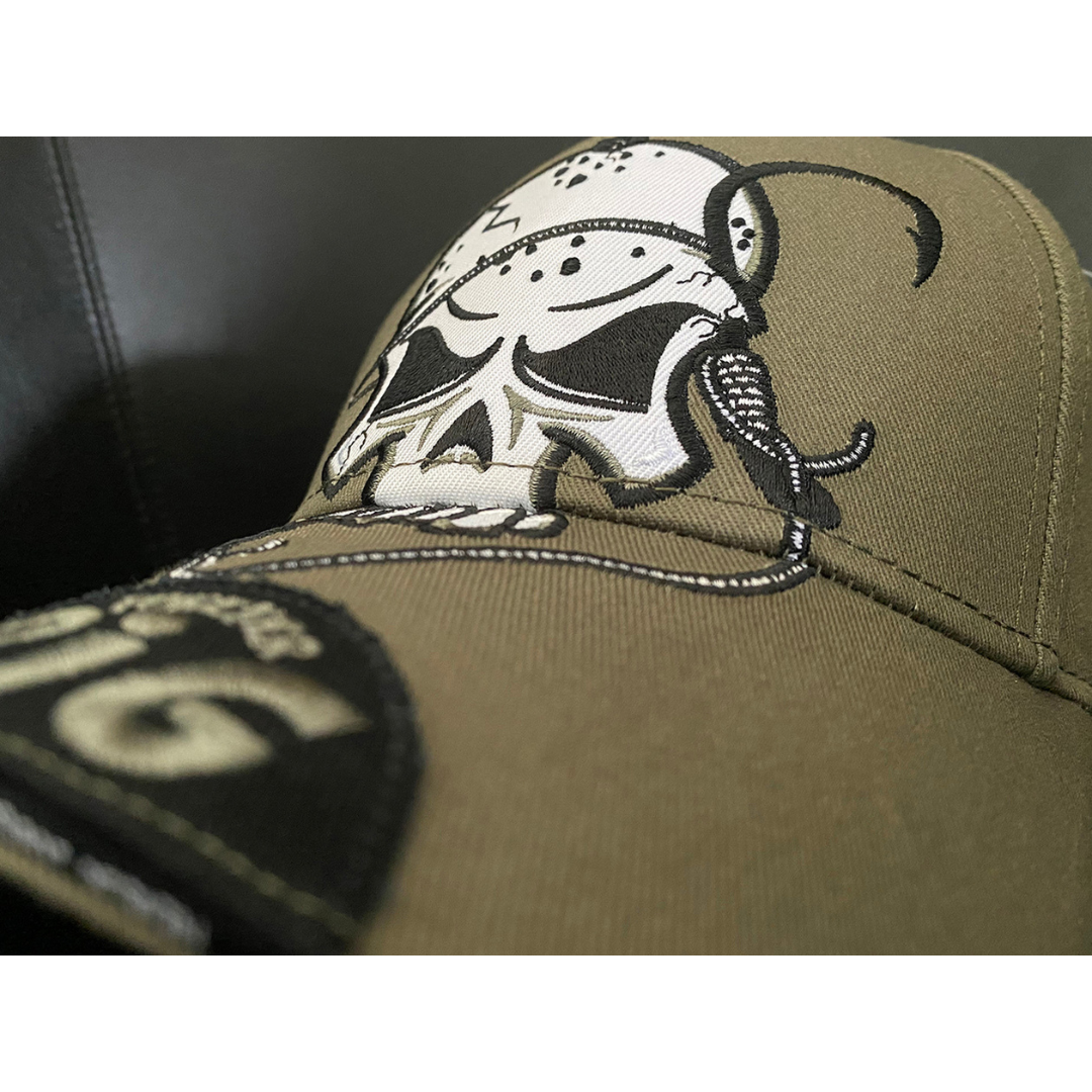 Cap front: Rig Forever artwork embroidered on the front and who is continuing on the visor.