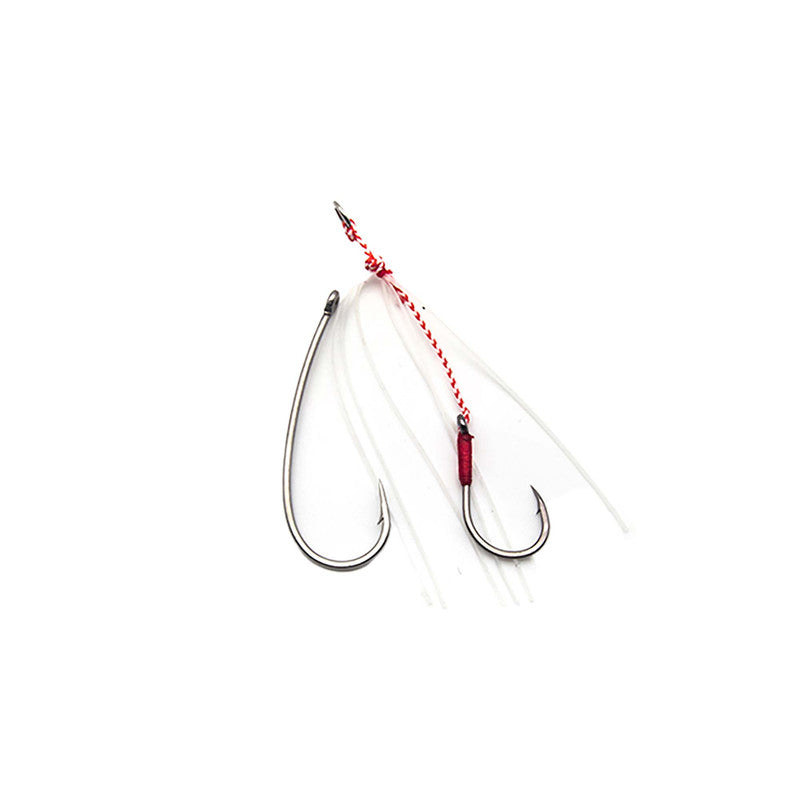 The JLC Glow Tenya Rig is designed for vertical fishing and involves the combined use of an artificial lure and a small piece of natural bait, such as shrimp, prawn, or cuttlefish strips. This combination enhances the rig’s appeal to bottom-dwelling species.