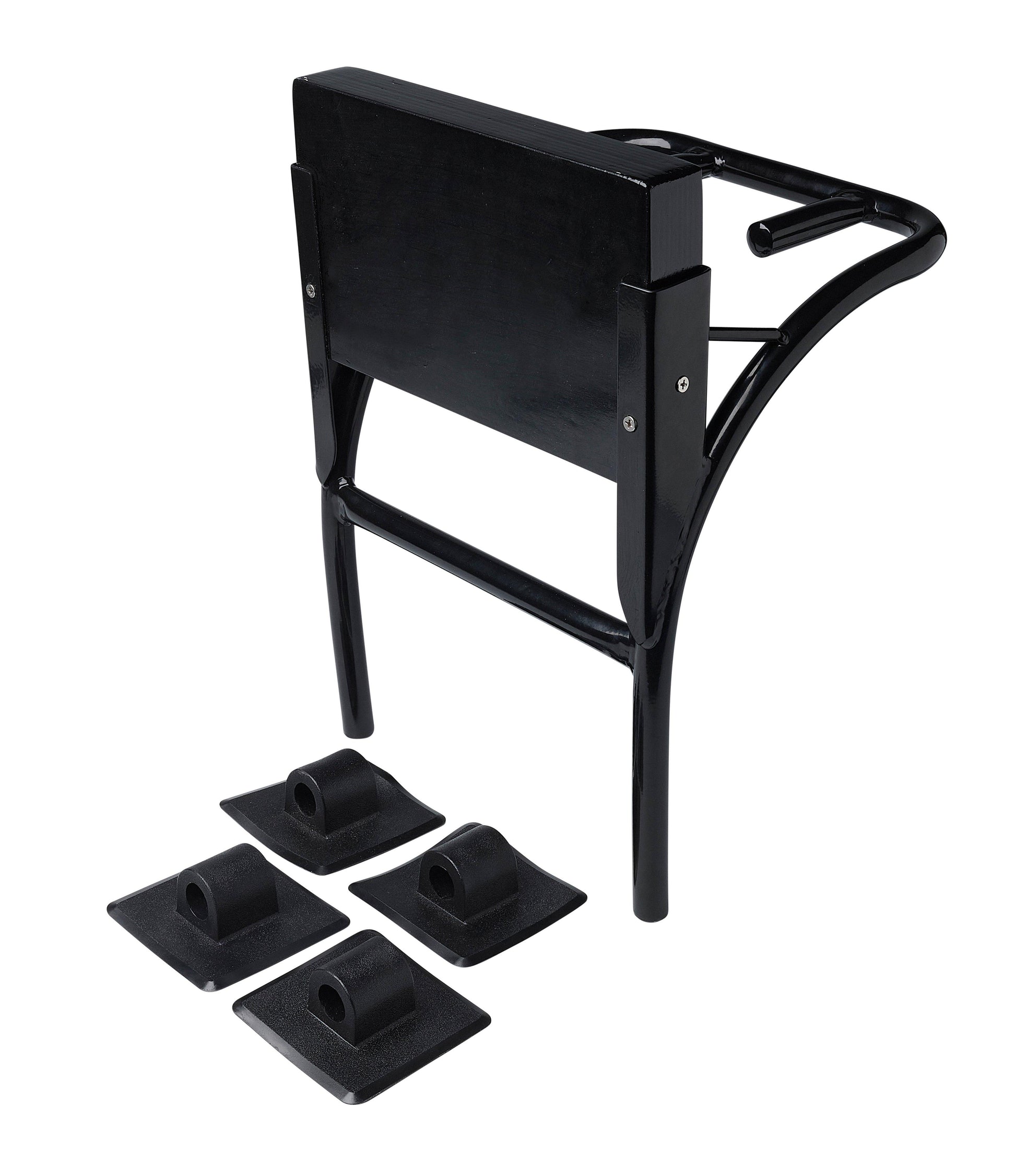 Removable motor mount for inflatable boats, like PVC or Hypalon belly boats. Designed for light outboard engines and electric trolling engines. Comes with four, glue-on holders. Dimensions: 40cm high, 27cm wide and 25cm deep. Glue-on holders: 95x95mm.